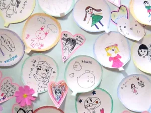 写真は職場体験に来てくれた子供たちからのメッセージ。イラストやメッセージにほっこりします。